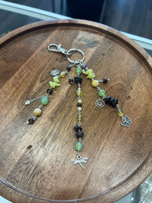 Serpentine + Garnet Chip Beaded Bag Charm/Keychain