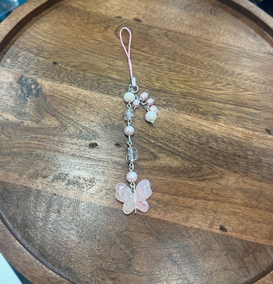 Pink Butterfly Dangle Beaded Phone Charm | Handmade