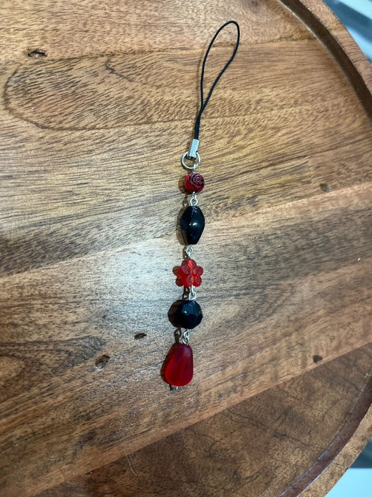 Red & Black Floral Bead Dangle Phone Charm | Handmade