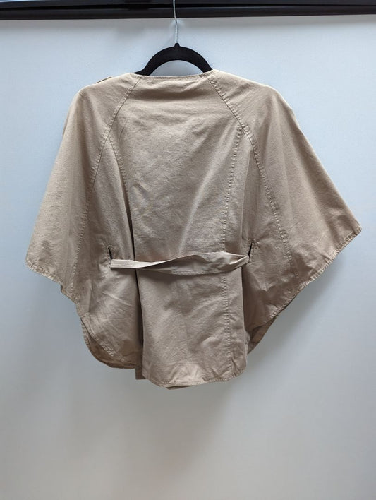 (FLAWED GEM) Tulle Tan Khaki Belted Cape Jacket with Floral Lining
