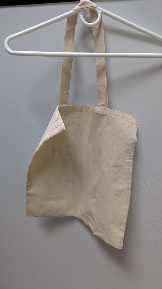 "Stitch + Feather" Beige 100% Cotton Canvas Tote Bag