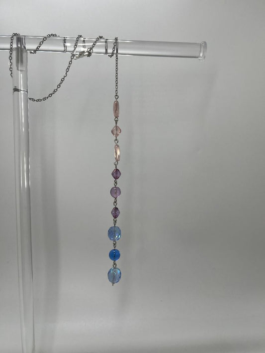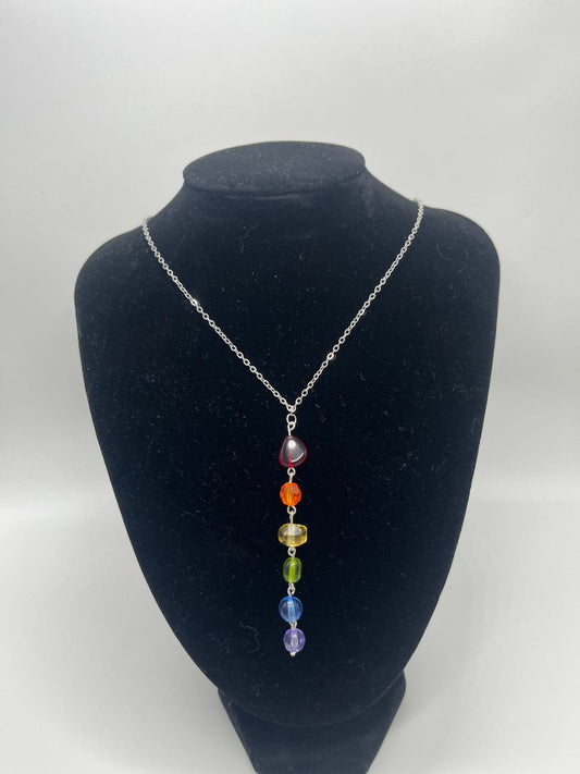 LGBTQ+ Pride Silver Beaded Dangle Necklace | Adjustable | Handmade