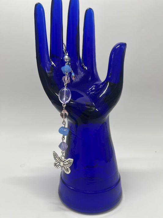 Butterfly Pastel Blue & Pink Beaded Bag Charm/Keychain | Handmade