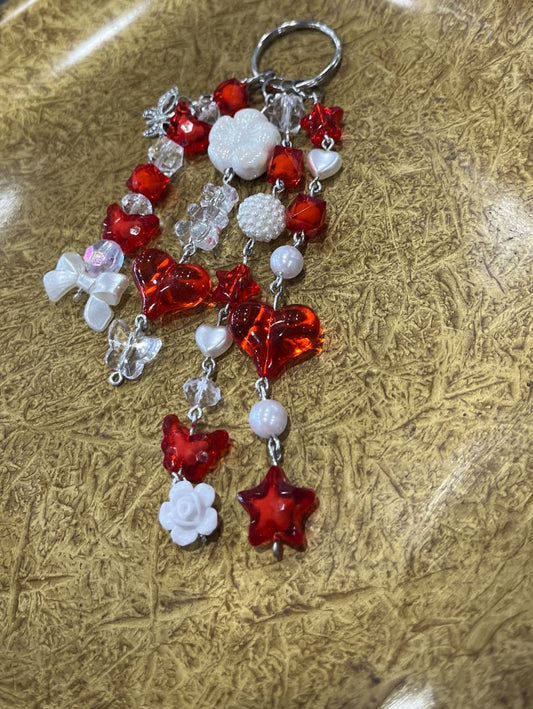 Red Butterfly Beaded Bag Charm/Keychain | Red, Clear, & White | Handcrafted by Recycled Threads