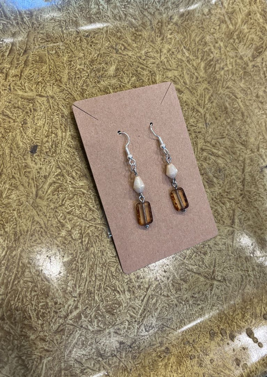 Minimal Tiger's Eye Earrings | Brown & Cream | Handcrafted by Recycled Threads