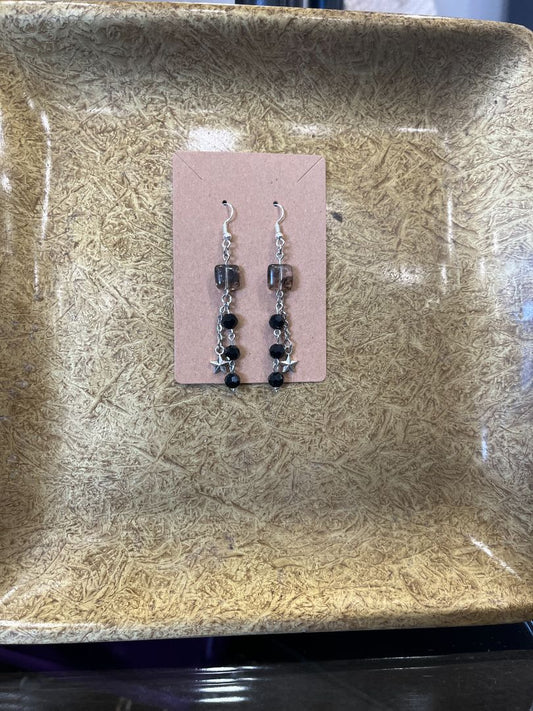 Black & Silver Wire Loop Earrings w/ Star Charms | Handcrafted by Recycled Threads