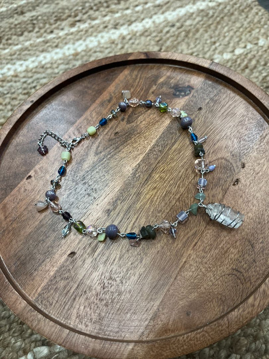 Wire Wrapped Clear Quartz Wire Loop Necklace | Labradorite + Sunstone | Handmade Jewelry
