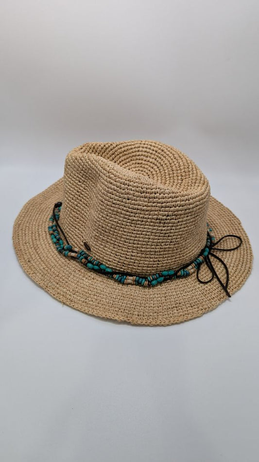KOORINGAL Brown Raffia Beaded-Band Sun Hat