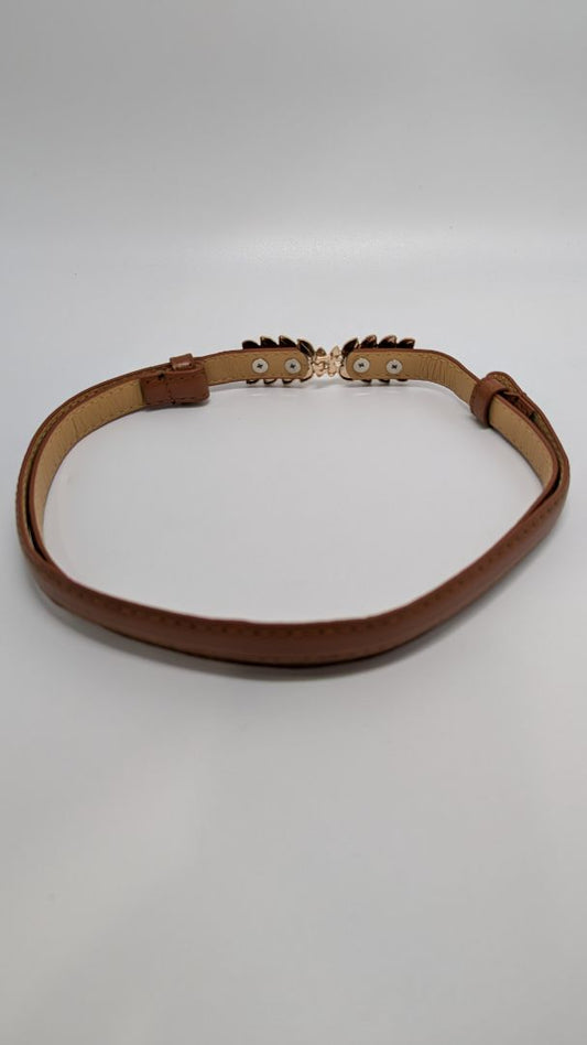 Brown/Gold Faux Leather Leaf Clasp Belt