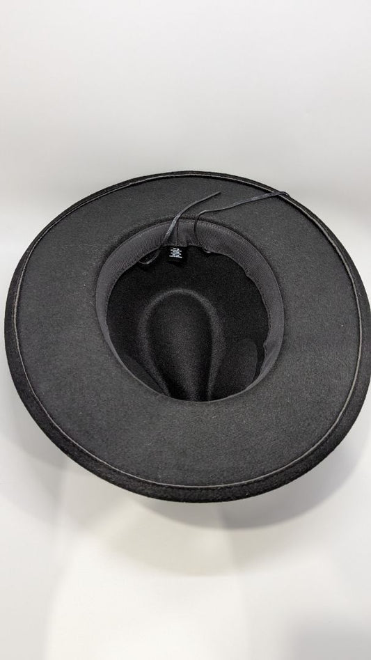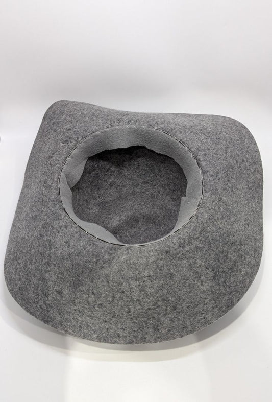 Grey 100% Wool Felt Wide-Brim Flower Hat