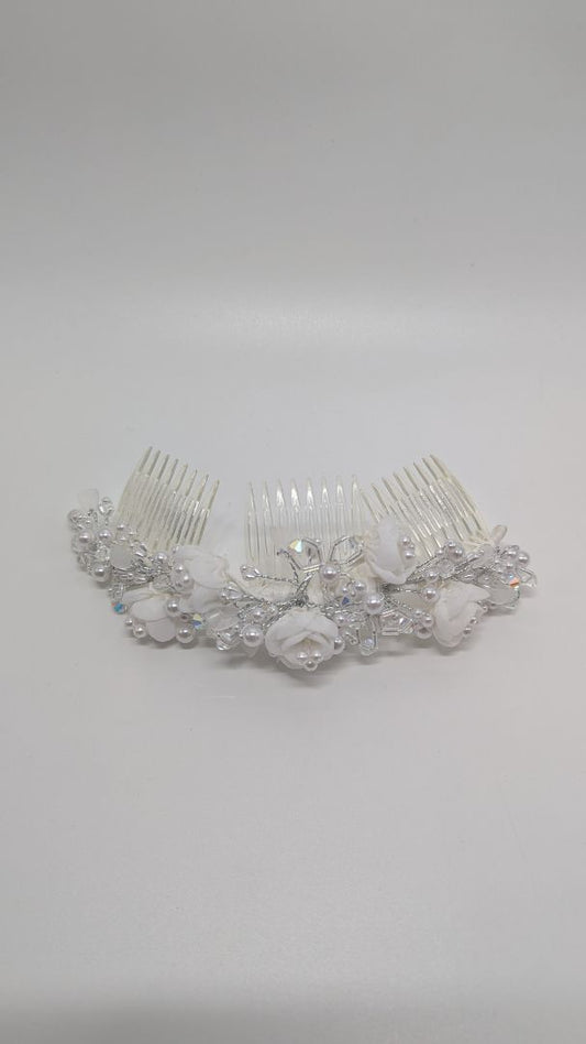 Vintage White Mesh Shoulder-Length Bridal Veil with Hair Clip