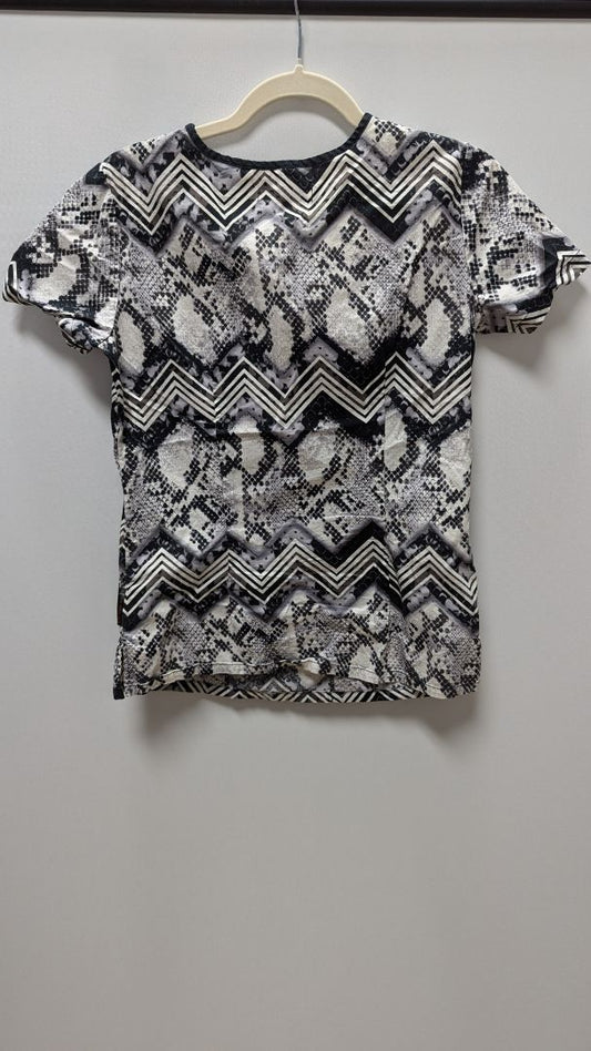 Koi Stretch Black/White Patterned Scrub Top