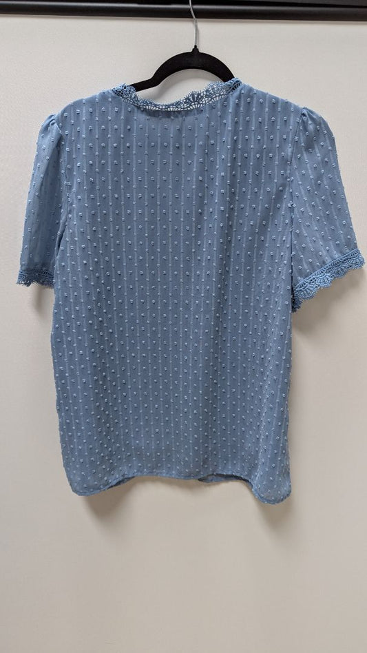 Light Blue Textured Lace Trimmed Blouse