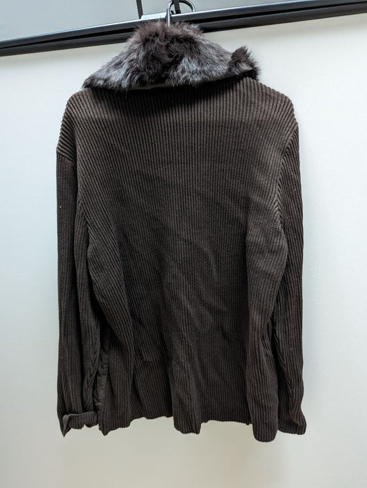 Nygard Collection Black/Brown Leather Front Sweater Cardigan