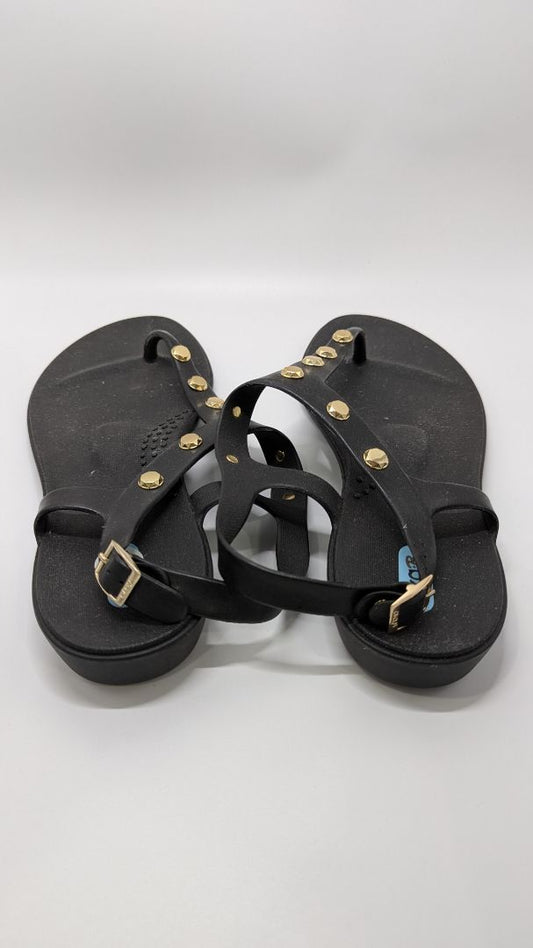 Oka Black/Gold Studded T-Strap Sandals