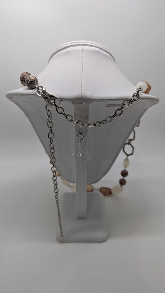 NY Silver/Brown Beaded & Chain Longline Necklace
