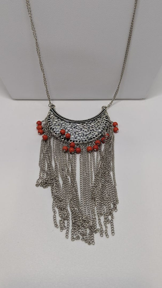 Paparazzi Silver/Orange Tassel Longline Necklace & Earrings Set