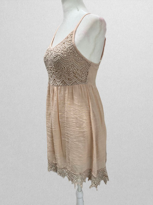 Poetry Taupe Pink Lace Bodice Babydoll Dress with Lace Trim