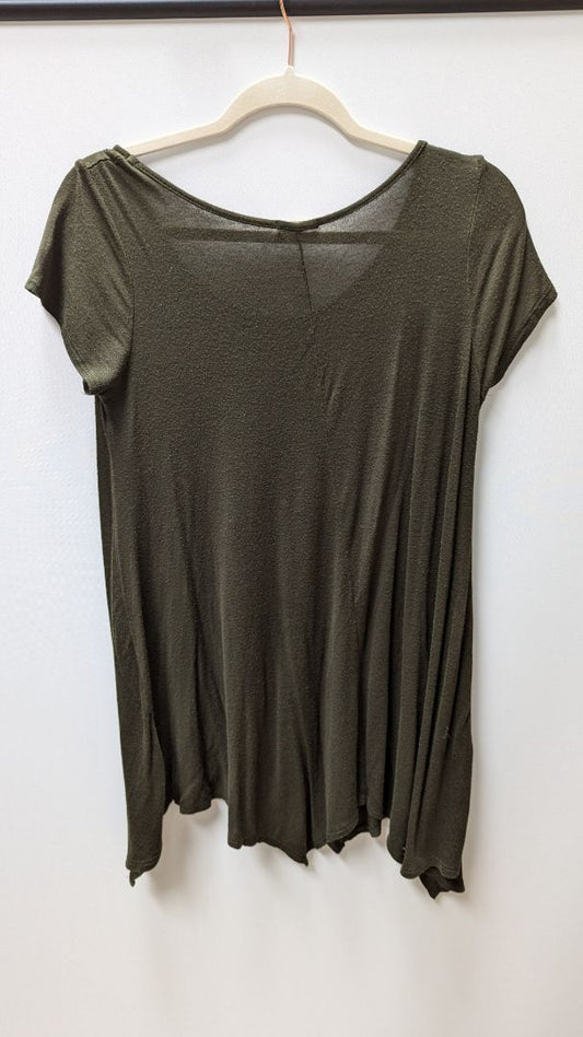 POETRY Dark Green Sheer Asymmetrical Tee
