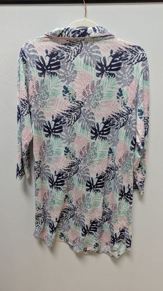 PJ Couture White/Navy/Pink Palm Floral Button-Down Nightgown Dress
