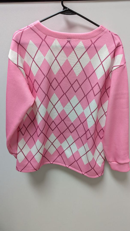 Pink/White Diamond Pattern Button-Down Sweater