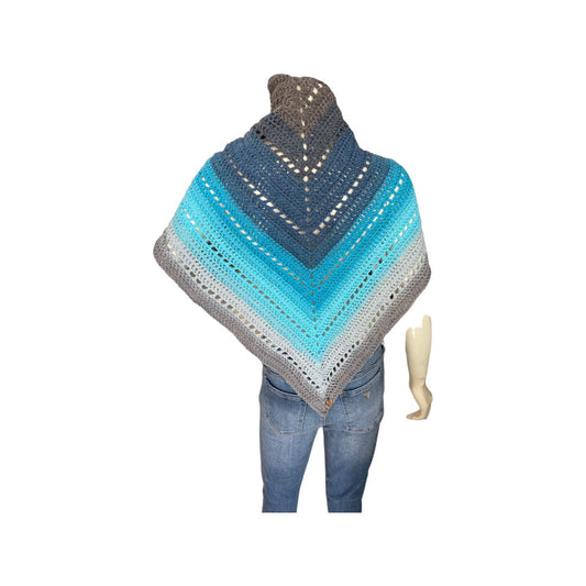 Recycled Threads Handmade Crochet Shawl Blue/Grey