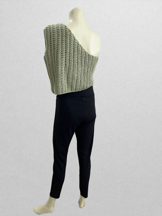 Recycled Threads Handmade Green One-Shoulder Crochet Top