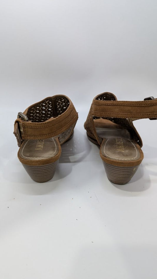 Anne Klein Tan Peep-Toe Heeled Sandals