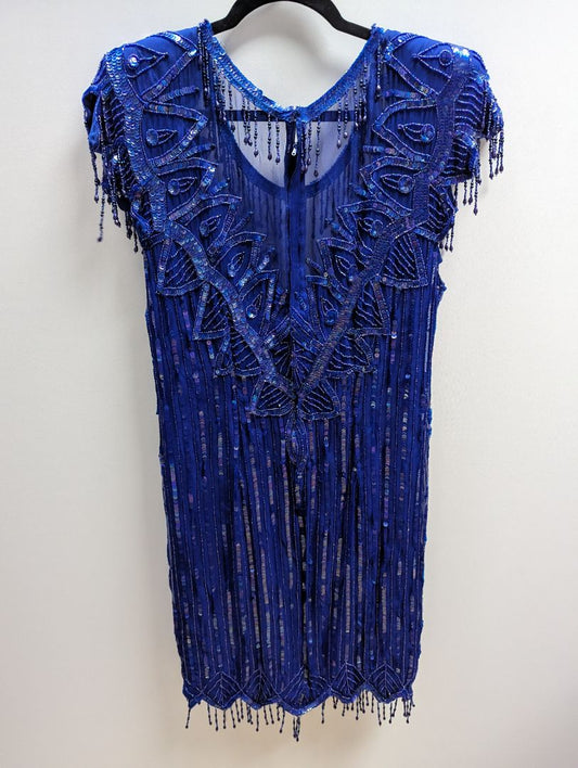 Scala Blue Beaded & Sequin Cocktail Cap Sleeve Dress