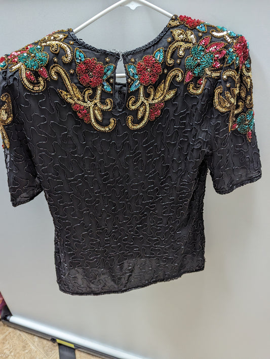 Scala Vintage Black Sequin Short Sleeve Blouse