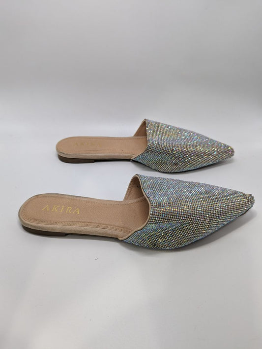 Silver Glitter Rhinestone Pointed Toe Slipon Flats