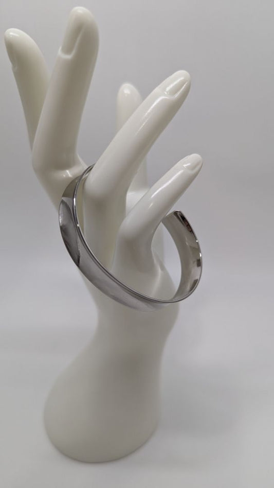 Silver Curved Metal Thick Bangle Bracelet