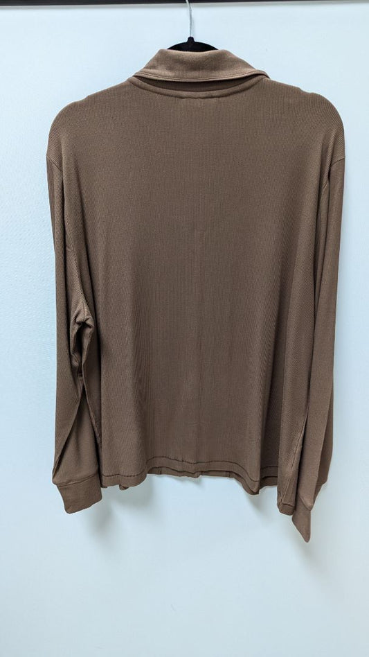 SKIMS Wood Brown Long-Sleeve Knit Lounge Shirt