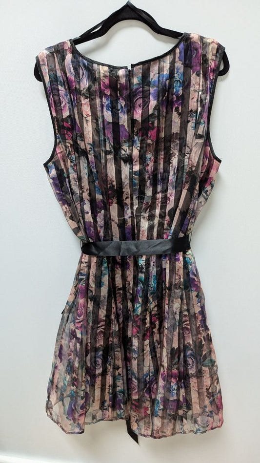 SLNY Black/Purple Floral Striped Flared Midi Dress