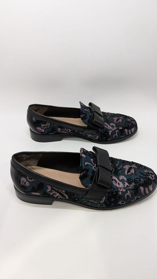 Stuart Weitzman Black Bowtie Embellished Floral Jacquard Loafers