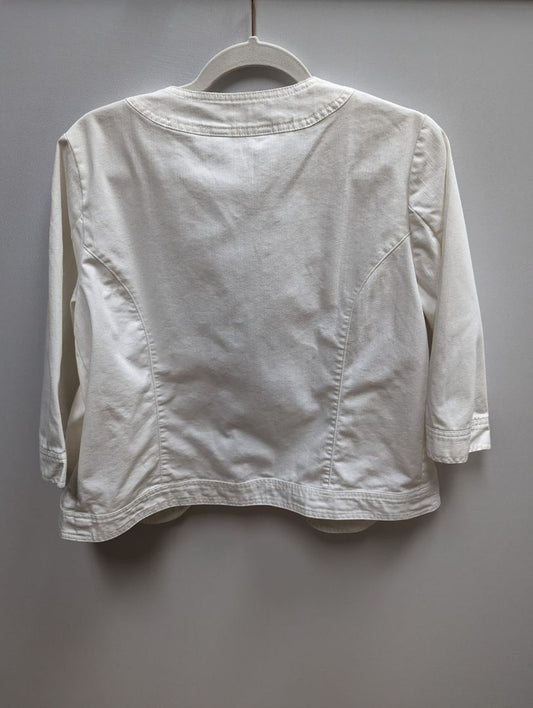 TanJay White 3/4 Sleeve Open Front Linen Blazer