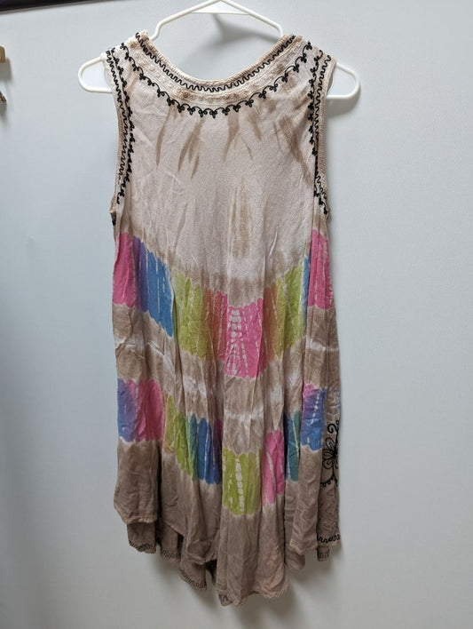 Tan and Multicolor Tie Dye Sheath Dress
