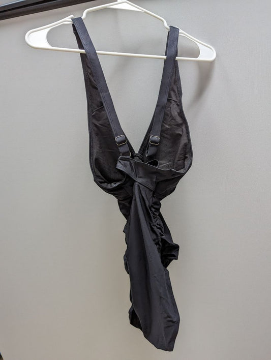 Tempt Me Black Plunge Cross Back One Piece Swimsuit