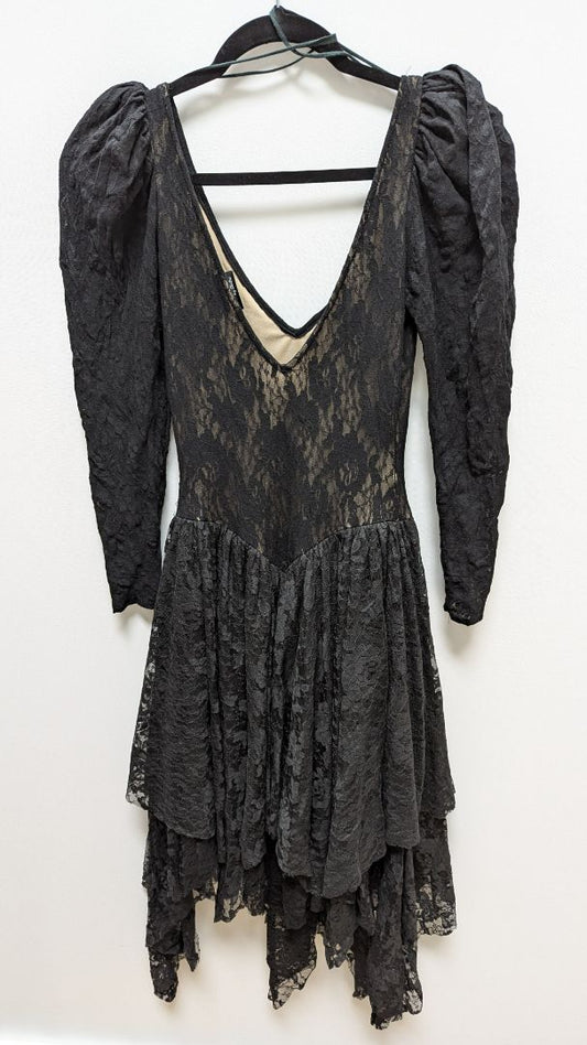 TD4 Black Lace Asymmetrical Hem Cocktail Dress
