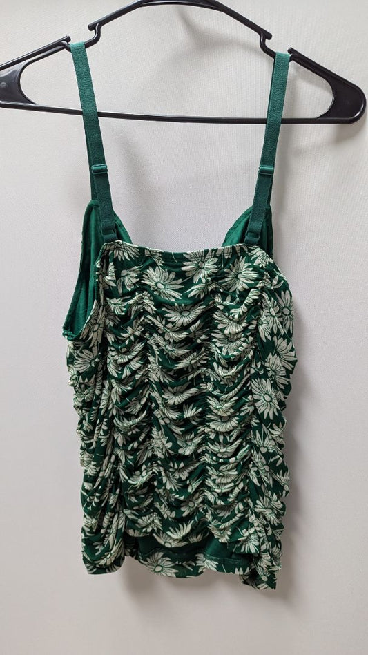 Torrid Green/White Floral Mesh Ruched Tank
