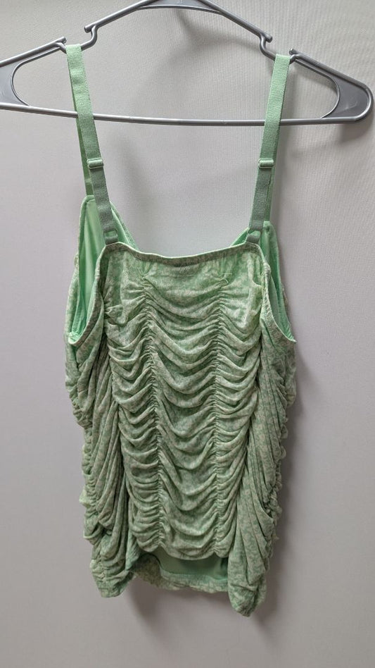 Torrid Light Green/Ivory Floral Mesh Ruched Tank