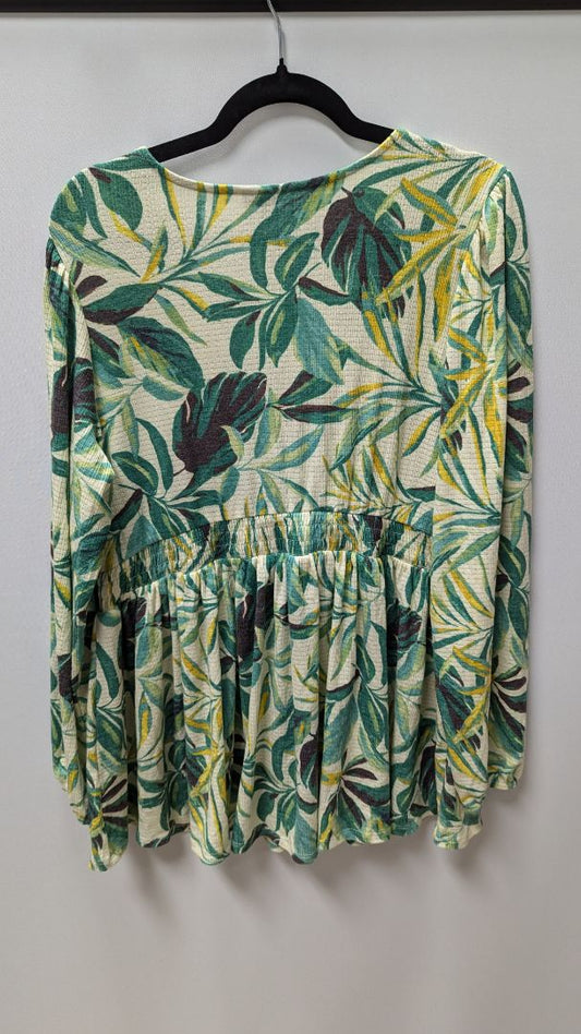 Torrid Light Green/Yellow Leaf Plunge Babydoll Blouse
