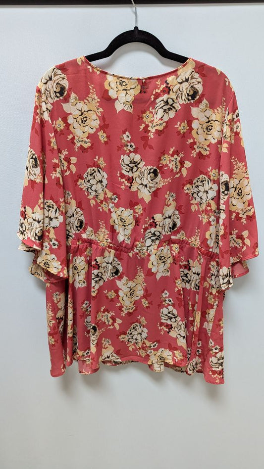 Torrid Coral/Yellow Floral Faux-Wrap Babydoll Blouse
