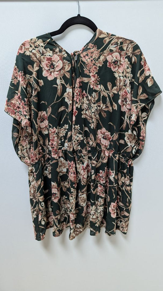 Torrid Dark Green/Pink Floral Faux-Wrap Blouse