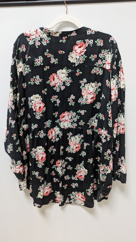 Torrid Black/Pink Floral Long-Sleeve Button-Down Blouse