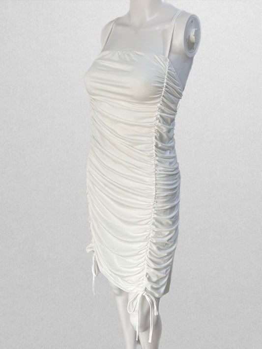 White Cocktail Dress with Ruching and Ties
