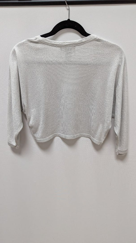 White House Black Market Silver Metallic Cropped Cardigan