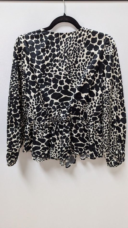 Who What Wear Black Spotted Ruffled Wrap Blouse