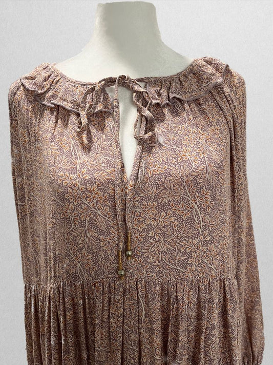 Yura Mauve Floral Long-Sleeved Tie-Neck Maxi Dress