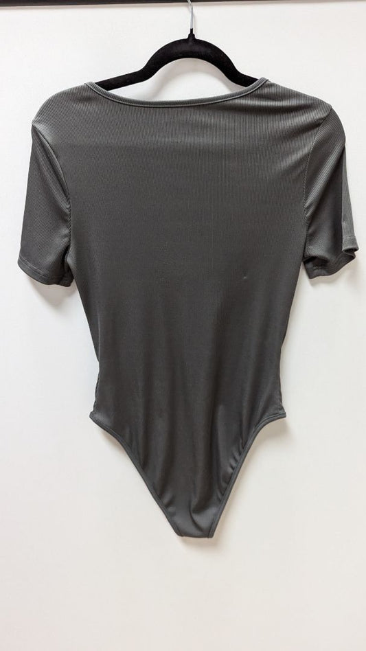 YOZY Dark Grey Ribbed Knit Cutout Bodysuit